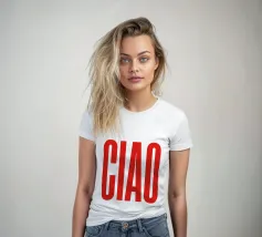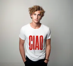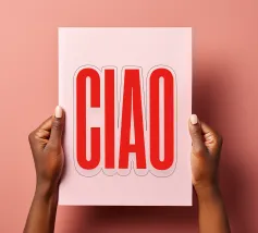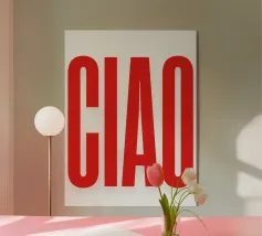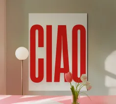 ciao text design, italian greeting graphic, bold red typography, modern minimalist lettering, stylish italian word, graphic text art