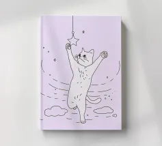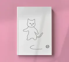 The playful and adventurous spirit of a cat hanging on a string with this minimalist line drawing. A modern abstract art piece that symbolizes curiosity, agility, and feline mischief.
