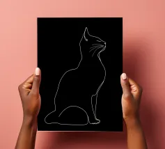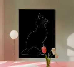 The elegance of simplicity with this minimalist line drawing of a cat sitting. A modern abstract art piece that perfectly captures the grace and charm of feline form.