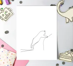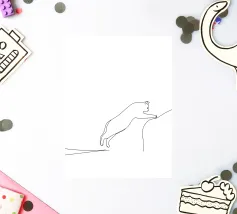 The playful energy of a kitty cat leaping with this minimalist line drawing. A modern abstract art piece that symbolizes agility, curiosity, and the lively spirit of felines.