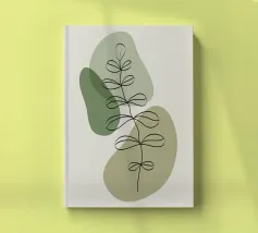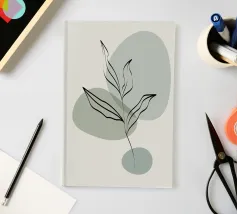 An elegant botanical composition in a minimalist abstract style, perfect for modern and Nordic interiors. The warm and natural tones of green and gray blend with organic shapes and delicate textures, creating a relaxing and sophisticated effect. Ideal for living rooms, bedrooms, or creative spaces. An art print designed for those who love nature, simplicity, and contemporary design.