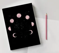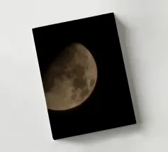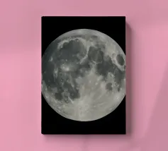 The moon hangs in the night sky, glowing with a soft, silvery light. Its surface is marked by craters and shadows, giving it a mysterious, ancient presence as it quietly watches over the Earth