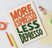 A humorous typo poster for all caffeine lovers: "More Espresso, Less Depresso" brings good humour and a wink to any wall. With its hand-drawn look in vibrant orange and dark green, it is perfect for the kitchen, office or coffee bar. Whether as a gift for coffee junkies or as a motivating start to the day - this poster is guaranteed to lift the mood.
