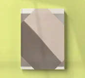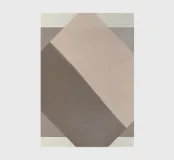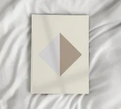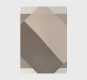 A geometric composition features overlapping rectangles in shades of beige and brown, creating a modern minimalist effect. The diagonal arrangement adds a sense of movement and depth.