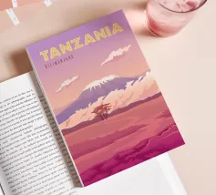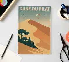 Minimalist Namibia travel design with Deadvlei or Sossusvlei in the Namib. This typical African landscape motif is perfect for all Namibia travellers who love the sand dunes and the picturesque camel thorn trees.