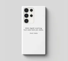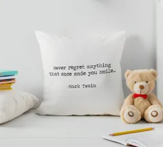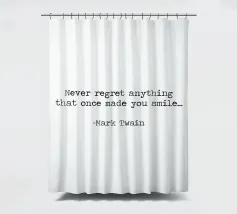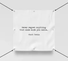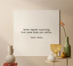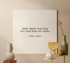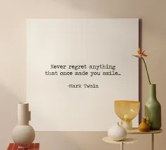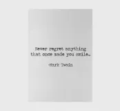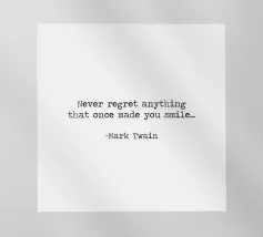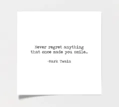 Never Regret Anything That Once Made You Smile -Mark Twain Quote minimalist black and white typerwriter typographical quote.