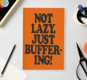 Not Lazy. Just Buffering! – This vibrant and witty design brings humour and honesty together in bold black lettering on a bright orange background. A must-have for anyone navigating burnout, neurodivergence or just modern life, it offers a punchy reminder that pausing doesn’t mean failing. Ideal for workspaces, bedrooms or student flats, and perfect as a quirky, understanding gift for friends or loved ones. Whether for birthdays or just because, this artwork delivers laughs with a side of compassion and truth.