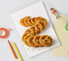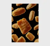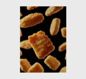 Golden-brown nuggets float against a dark background, showcasing their crispy texture and appetizing appearance. The striking contrast highlights the delightful snack's appeal.