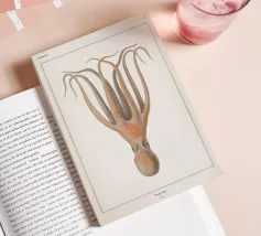 This striking art print reimagines a vintage 1890s deep-sea illustration of a Velodona octopus, originally drawn by Carl Chun for the German Deep Sea Expedition. Now given a contemporary twist with soft pastel gradients and radiating circular forms, the image is elevated from science into sacred. The piece is perfect for ocean lovers, design-conscious collectors, or anyone looking to bring a splash of the surreal into their space. Ideal for bathrooms, coastal-themed nurseries, or as a bold statement in modern interiors — it’s natural history with a psychedelic soul.
