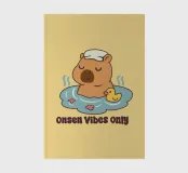 A peaceful capybara relaxes in a hot spring with a towel on its head and a rubber duck companion, surrounded by cherry blossoms. This adorable kawaii-style illustration radiates calm and cozy energy, perfect for those who crave chill vibes and soft aesthetics. Ideal for fans of Japanese culture, cute animals, or anyone who believes that stress should be left at the door—Onsen Vibes Only.
