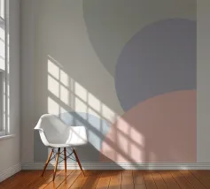 Soft, modern composition where translucent circles gently intersect in calm, muted tones. Blush pinks, pale blues, and warm creams blend to create a sense of balance, harmony, and visual ease. The artwork evokes simplicity, elegance, and the quiet beauty of form and color.