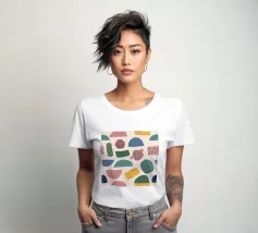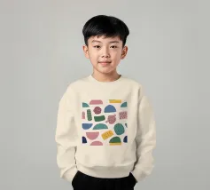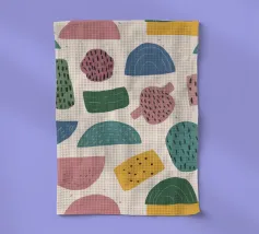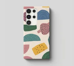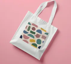 A gentle and pleasing pattern of abstract, organic shapes in pastel colors like pink, blue, and yellow, creating a soft, modern, and cheerful design.