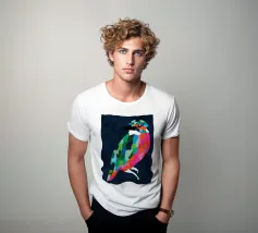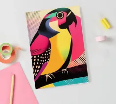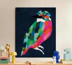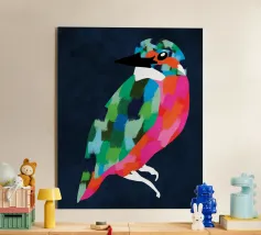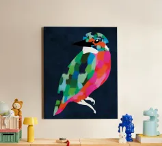 "Patchwork Perfection" captures the vibrant beauty of birds, each adorned in a mosaic of colorful patterns. This art print celebrates the harmony of nature’s palette through intricate feathered details.