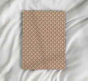 A repetitive geometric pattern composed of white shapes is set against a brown background, creating a uniform and rhythmic design. The arrangement of shapes forms a continuous and seamless visual effect.