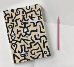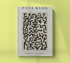 Explore the rhythmic lines of Paul Klee's Abstract Figures digital art print. This compelling abstract painting, a unique piece from the Bauhaus era, features a dynamic composition of thick, dark, interlocking lines forming stylized figures or symbols against a light, textured background. Klee's distinctive style, influenced by primitive art, creates a sense of movement and visual language through form and rhythm. This high-quality digital reproduction boasts a resolution of 7000x5000 pixels at 300 dpi, ensuring outstanding clarity, sharp lines, accurate colors, and faithful detail of the pain