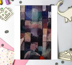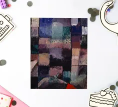Immerse yourself in the captivating world of Paul Klee with "About a motif from Hammamet," a striking abstract work from 1914. This piece embodies Klee's exploration of color, rhythm, and form, inspired by his travels. The painting features a complex arrangement of multi-colored blocks and textures, creating a harmonious yet dynamic composition that invites contemplation. It showcases his masterful ability to convey emotion and structure through abstraction. Our digital poster faithfully reproduces this iconic artwork with stunning clarity and detail, boasting an impressive 7000x5000 pixels at