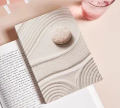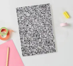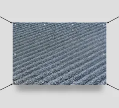 This work of art shows a delicate section of a Zen garden - a meditative composition of filigree pebble lines that run diagonally across the picture surface. The pebbles are fine, grey and evenly distributed, creating a calm, almost hypnotic pattern. Each line has clearly been drawn with care, the precision reflecting the idea of inner order and concentration.