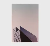 This architectural vision of Copenhagen plays on contrasts, between revisited brutalism and pastel softness. The city takes on the appearance of a geometric sculpture, oscillating between deep shadows and rosy light. A modern, almost dreamlike poster for fans of bold shapes.