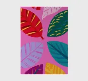 A modern, graphic pattern of large red and pink tropical leaves against a vibrant pink background. The composition is a bold, stylish, and beautiful piece of contemporary botanical design.