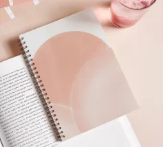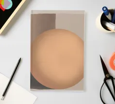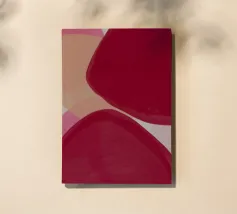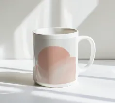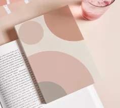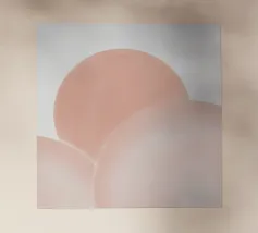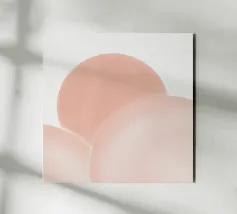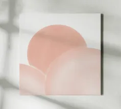 Several overlapping, softly shaded circles in pastel pink hues create a calming abstract composition against a light backdrop. The simple yet elegant design evokes a sense of tranquility through its minimalistic shapes and gentle color palette.