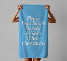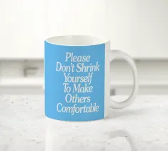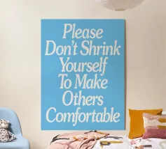 Please Don’t Shrink Yourself To Make Others Comfortable. This empowering print delivers a message of self-worth and authenticity in flowing white text on a serene blue background. A powerful visual reminder for bedrooms, studios or wellbeing spaces, it encourages confidence without apology. Ideal as a meaningful gift for teens, creatives or anyone reclaiming their space in the world. Whether for birthdays, new chapters or daily inspiration, this artwork promotes presence, pride and the right to take up space.