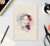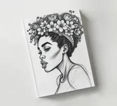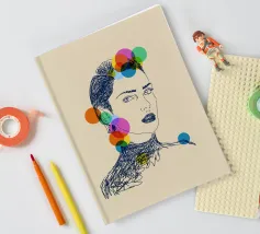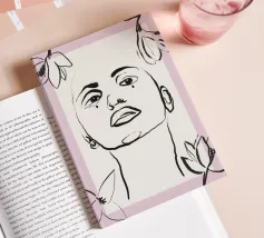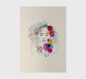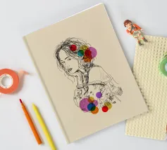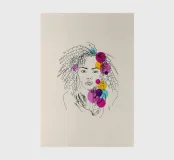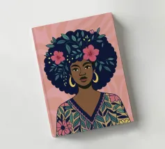A bold line drawing of a confident young woman with voluminous curly hair, rendered in deep strokes. Her gaze is calm yet powerful, and her natural beauty radiates from the center of the composition. Overlapping circles in vibrant colors—hot pink, sunny yellow, rich orange, and lavender—surround her like an aura, symbolizing joy, resilience, and identity. The contrast between the expressive ink sketch and the flat, pop-style color splashes creates a sense of dynamic balance and modern elegance.