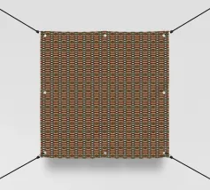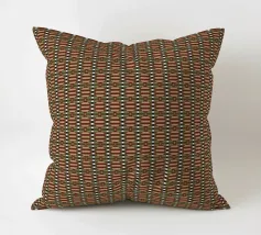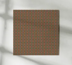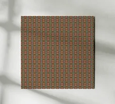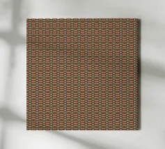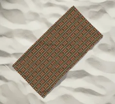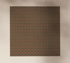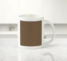 A repetitive geometric pattern features diamond shapes in warm brown and beige tones, interspersed with black and green lines. The design creates a visually intricate grid that is both symmetrical and uniform.