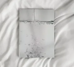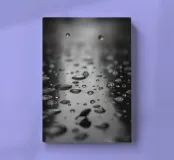 Droplets of water scatter across a sleek, reflective surface, capturing light in an abstract formation. This minimalist background offers a serene and calming vibe for mobile devices.