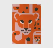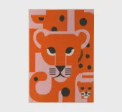 Playful modernity with a retro look: this charming composition reduces leopards to basic geometric shapes. The vibrant tricolour - bright orange, soft pink, deep grey - is reminiscent of Scandinavian design from the 1960s and Charley Harper's wildlife illustrations. The two-dimensional shapes and minimalist facial features show influences from Bauhaus and mid-century graphics. Mother and cub appear as abstract puzzle pieces that are simultaneously cute and sophisticated. A perfect balance between naive simplification and perfect design.