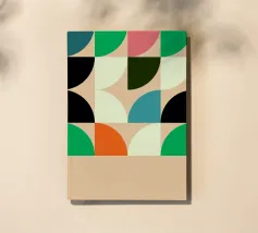 A bold and playful geometric abstract design featuring a mix of circles, squares, and curved shapes in a vibrant retro-inspired palette. The balanced composition and warm tones make this a stylish addition to modern interiors, mid-century decor, and colorful gallery walls. Perfect for those who love abstract patterns and timeless geometric aesthetics. Designed by showmemars