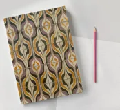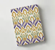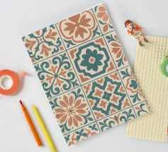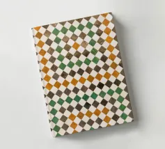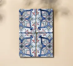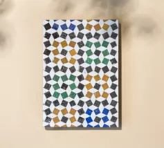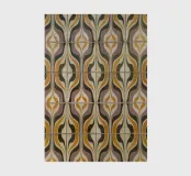 This artwork captures a striking tile pattern from Matosinhos, Portugal, where geometric forms and retro colors come together in perfect harmony. The abstract design, with tones of ochre, lavender, olive, and cream, reflects a mid-century modern aesthetic while carrying the cultural heritage of traditional Portuguese azulejos.