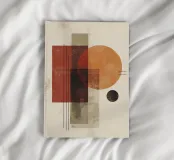 Modern abstract wall art in earthy rust, dust orange and beige tones. With its layered forms and textured design, this artwork brings warmth and structure to minimalist, retro, or Scandinavian spaces.