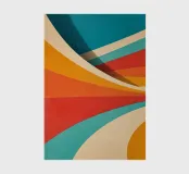 This poster exudes pure retro vibes: dynamic curves in warm orange, red and yellow tones meet calming turquoise and cream - a clear reference to the design of the 70s. The vintage look with a fine patina creates a nostalgic charm and makes the motif a real eye-catcher. Ideal for anyone who wants to bring colour, movement and retro aesthetics into their rooms. Whether in the living room, office or creative area - this picture makes a bold, stylish and therefore timeless statement.