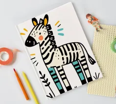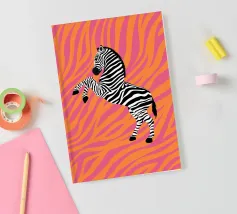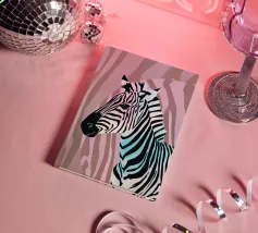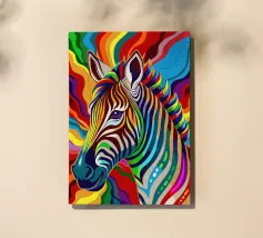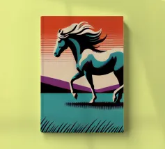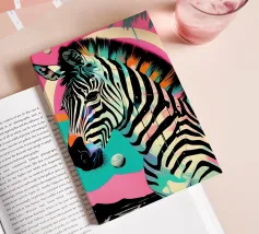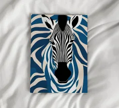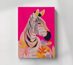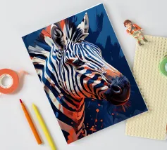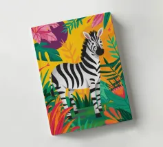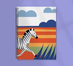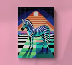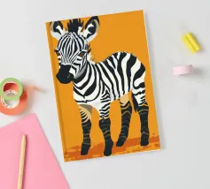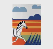 Enjoy a vibrant wildlife illustration featuring a zebra running in the savanna with clouds in the background.