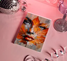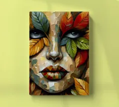 Acrylic portrait painting of a woman's face on a leaf.