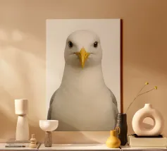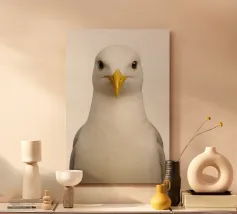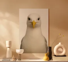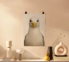 Bring a calm coastal vibe into your space with this beautifully detailed seagull portrait art print. Featuring soft feathers, natural tones, and a clean white background, this minimalist design fits perfectly with coastal, Scandinavian, and modern home decor. Its confident expression adds personality while maintaining a clean and elegant aesthetic. Ideal for beach houses, living rooms, bedrooms, offices, bathrooms, and gallery walls. A perfect gift for ocean lovers, bird enthusiasts, and anyone who loves stylish nature-inspired art.