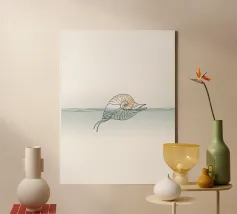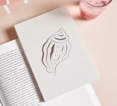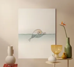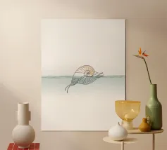 Minimalist line art of a seashell, perfect for coastal-themed decor and ocean lovers. A serene addition to any space.