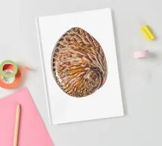 Shell fossil petrified amonite This photograph captures the ammonite shell in all its glory, highlighting its stunning textures and intricate details. The mesmerizing spiral pattern tells a story of millions of years, transporting viewers back to a time when these fascinating creatures roamed the oceans. The rich hues of the fossilized shell, ranging from earthy browns to soft creams and subtle greens, create a warm and inviting atmosphere, making this image a perfect focal point in any room.