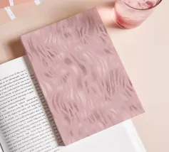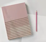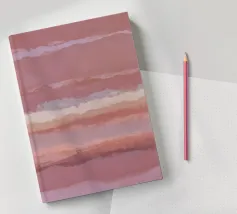 Soft edged and fuzzy textured, taupe and egg-shell colored, thick and thin lines on a dusty pink background. Developed from the play of light and shadows of shutter blinds.