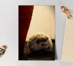 The little hedgehog has a round body, covered with sharp spines but still exudes a lovely look. Its black eyes sparkle, its tiny pink nose is always sniffing as if it is sniffing everything around it. The short, not yet hard spines, interspersed with the soft fur make it look both funny and gentle. When encountering something strange, it can curl up into a cute little ball, only revealing its shy nose.