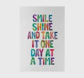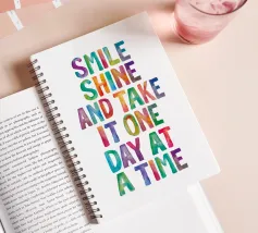 Brighten your space with this vibrant typography art print featuring rainbow watercolour hand-painted lettering on a crisp white background. The cheerful message encourages positivity and mindfulness, making it perfect for any room needing a splash of colour and inspiration. The delicate blend of hues creates a stunning visual effect, showcasing the artist's skill in watercolour techniques. This versatile piece complements various decor styles, from minimalist to eclectic. Ideal for those seeking a daily reminder to stay positive and take life one step at a time, it's a thoughtful gift