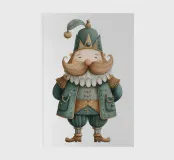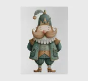 Children's bedroom poster depicting a smiling duke with a large moustache and an elegant green uniform. A watercolour illustration full of sweetness and fantasy, ideal for adding charm, originality and poetry to the wall decoration of a child's bedroom.