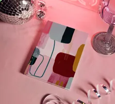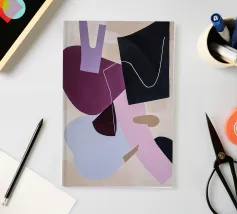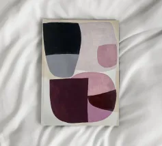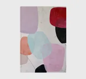 A calm, contemporary abstract built from gentle rounded shapes in pink, lilac, coral, mint and deep black. The layered forms float effortlessly on a textured light background, creating a sense of softness and balance. This artwork brings a fresh, modern mood to any interior — harmonious, airy and quietly expressive.