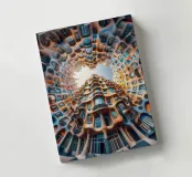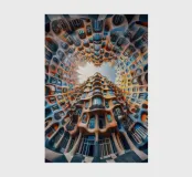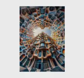 A breathtaking view of a circular architectural structure featuring organic, flowing patterns and vibrant hues. The unique design blends creativity and innovation, offering a surreal visual experience with intricate details and a bright open sky.