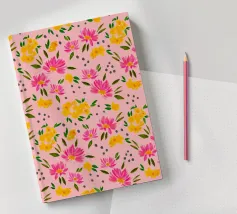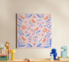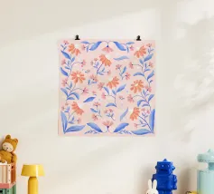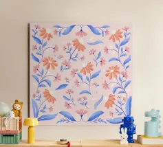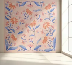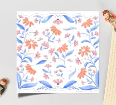 A beautiful pattern of hand-drawn, stylised flowers, leaves and blossoms in pastel, harmonious colours. Bring spring into your home with this floral pattern.