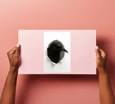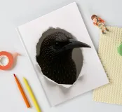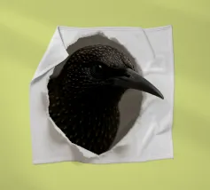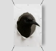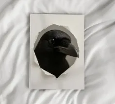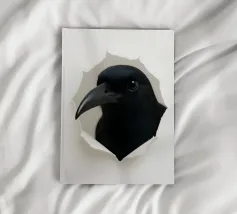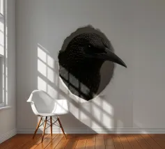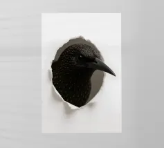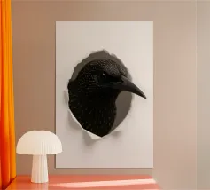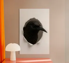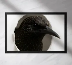 Add a touch of curiosity and elegance to your walls with this striking starling peek-through artwork. Featuring a detailed, glossy-feathered bird appearing through a torn paper effect, this design blends realism with modern minimalism. The dark feathers with golden speckles create a bold contrast against the clean white background, making it perfect for contemporary interiors, office décor, nature-themed rooms, or as a unique gift for bird lovers. This playful yet sophisticated art piece brings style, personality, and conversation-starting charm to any space.