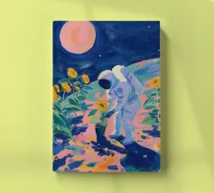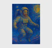 Explore a dreamlike vision of space with this mesmerizing cosmic astronaut artwork. Painted in a swirling, Van-Gogh-inspired style, the design features a lone astronaut drifting through a vibrant galaxy filled with glowing stars and spiraling light. Rich blues, yellows, and warm highlights create a textured, emotional atmosphere that feels both peaceful and otherworldly. Perfect for space enthusiasts, lovers of surreal art, and anyone seeking a meaningful, imaginative statement piece. Ideal for bedrooms, offices, studios, and modern interiors that appreciate bold artistic expression.
