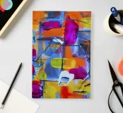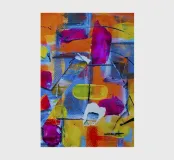Dive into the dynamic energy of this vibrant abstract artwork by Steve Johnson, titled "Abstract No. 17." This piece is a captivating explosion of color, featuring bold strokes of orange, blue, yellow, and magenta, with intriguing textural elements and contrasting black lines. It embodies a modern expressionist style, bringing contemporary flair to any space. This high-quality digital print captures every detail with exceptional clarity, boasting an impressive 7000x5000 pixels at 300 dpi, ensuring a truly immersive visual experience.