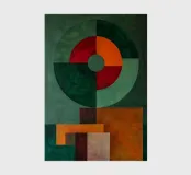 Circles and squares converge in rich hues of green, orange, and red. βGeometry in Motionβ explores the dialogue between structure and spontaneity, blending Bauhaus precision with painterly texture.