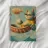 A charming and surreal scene of a striped cat wearing sunglasses and a yellow shirt, relaxing in a patterned hammock above stylized ocean waves. Surrounded by hanging fish, this cool feline radiates summer vibes and playful energy. The textured, hand-drawn style and soft retro palette make this illustration perfect for fans of whimsical characters, fantasy worlds, and humorous animal scenes with personality and charm.
